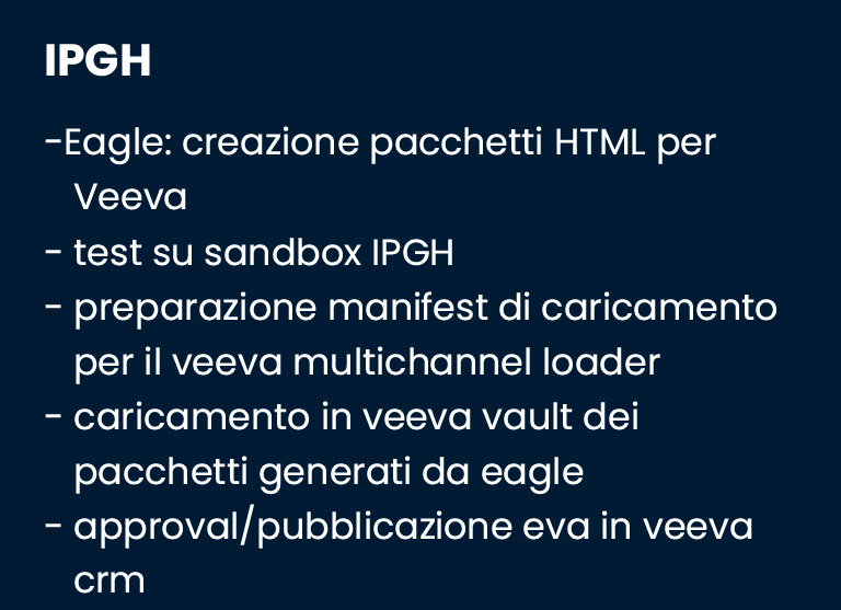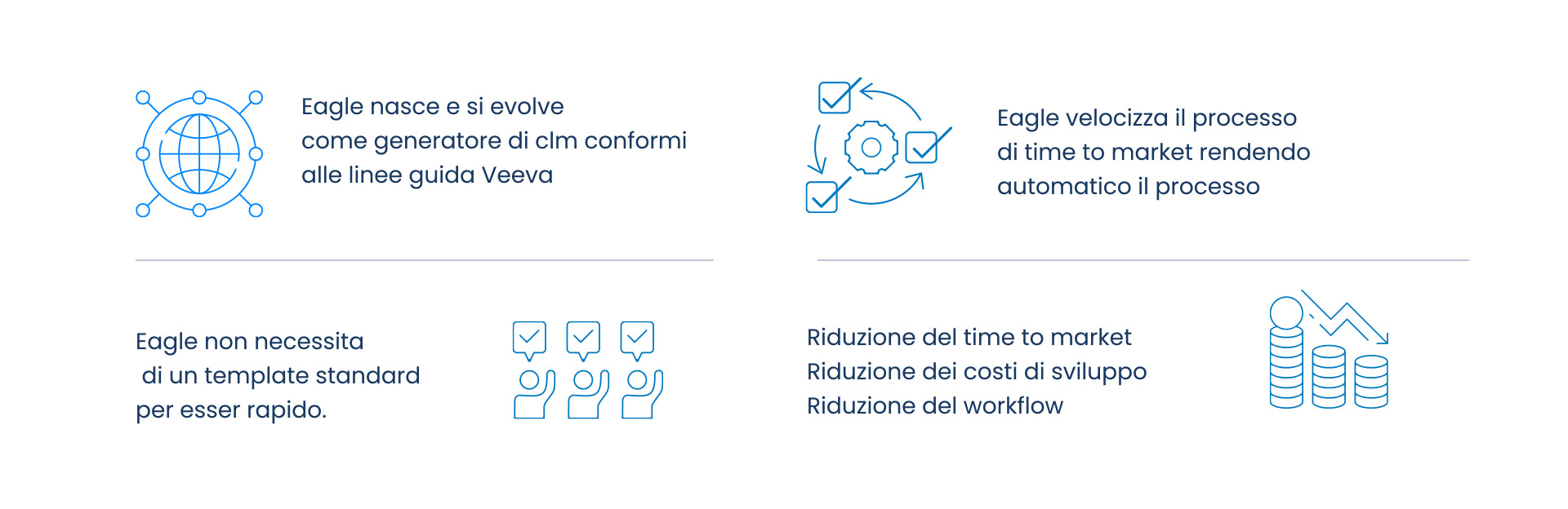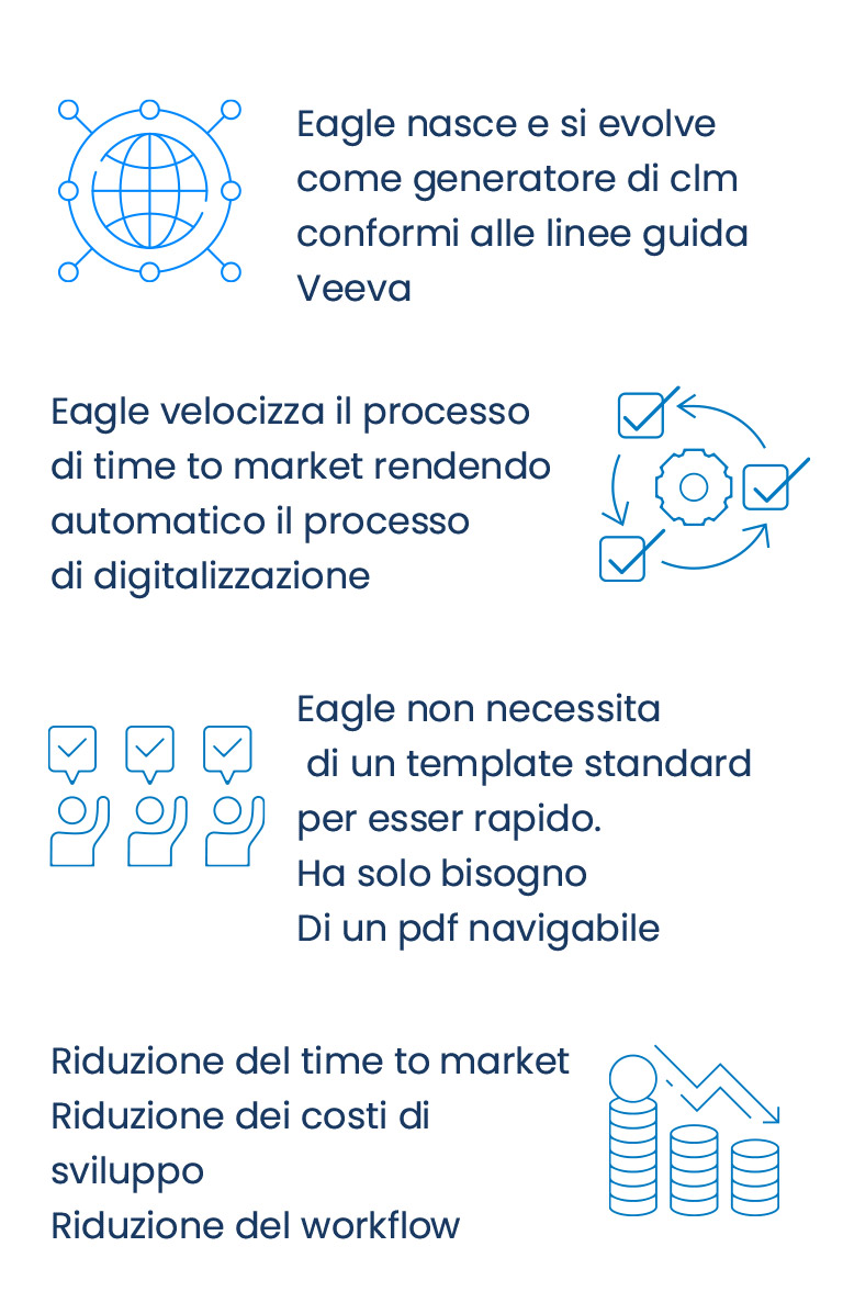 Eagle è uno tool realizzato da ipgh, progettato per facilitare la creazione rapida e automatizzata di presentazioni clm Veeva, garantendone una conformità al 100%.