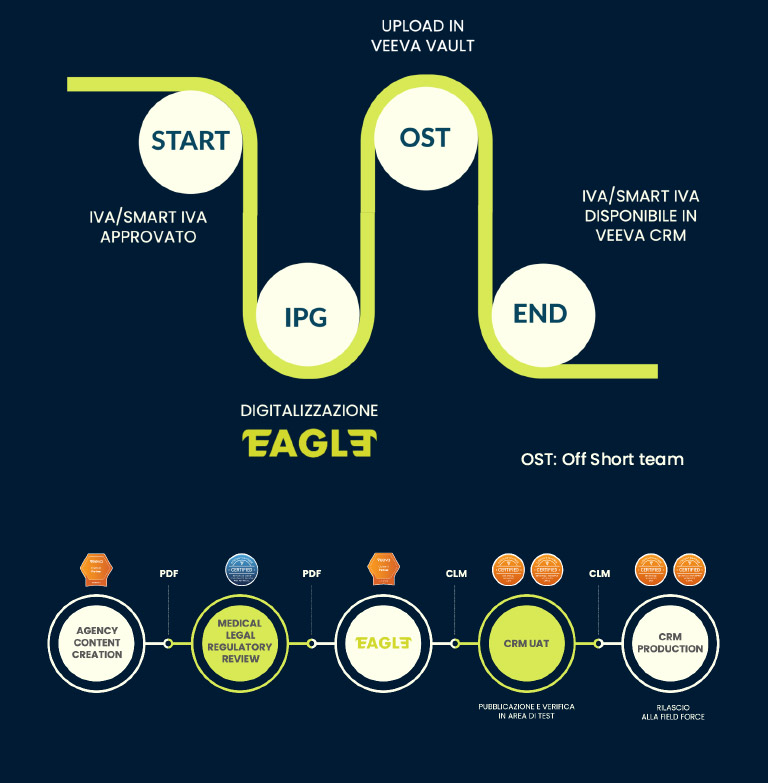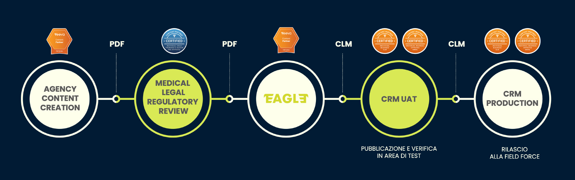Eagle utilizza il pdf del CLM navigabile per generare direttamente i pacchetti HTML da caricare in Veeva vault.